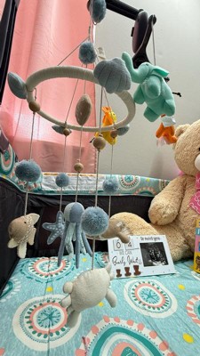 [This review was collected as part of a promotion.] The Crane Baby Cove Ocean Animal Nursery Ceiling Hanging Decor is a charming and whimsical addition to any nursery. Featuring adorable ocean animal designs, it instantly brings a sense of calm and wonder to the room. The soft, soothing colors and gentle movement create a relaxing atmosphere that’s perfect for both playtime and naptime.