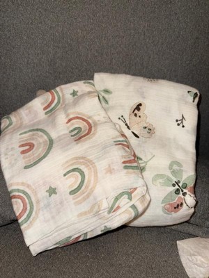[This review was collected as part of a promotion.] These items are both aesthetic for someone who isn't big on doing full pink or blue for a gender, more neutral for both. Not only that, they are great for swaddling, using as a cover, a lay down sheet or really anything cloth wise. They are large which I also like, very breathable but a nice material. I honestly want more of this line for my next child too.