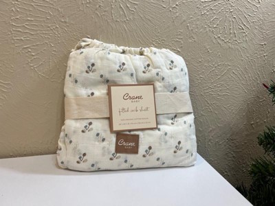 Create a soothing sleep environment with the Crane Baby 100% Organic Muslin Cotton Fitted Crib Sheet from the Avery Collection. Made from 100% GOTS-certified organic cotton, this crib sheet offers the perfect blend of comfort and breathable safety. The delicate pattern, designed in soothing earth tones, adds a whimsical touch to any baby nursery. Packaged in a reusable fabric bag to keep other baby essentials neat and tidy. Pairs perfectly with other items in the Crane Baby Avery Collection to create a nursery that offers delight and tranquility. Opt for organic cotton to provide your baby with the best in gentle, luxurious bedding. Our crib sheets can also be used as toddler crib sheets on standard size toddler beds.