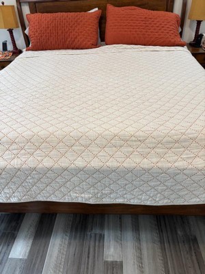 [This review was collected as part of a promotion.] I’m really happy with this bedspread. The diamond stitching looks elegant without being fussy, and it feels light but still warm. It washed nicely with no shrinkage. A great find. Simple, classic, and cozy.