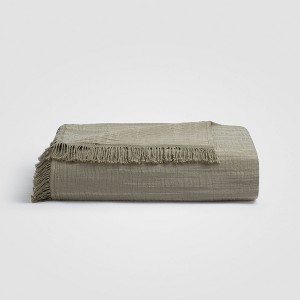 Sage Fringe Textured Cotton Bedspread, Warm Neutral Accent