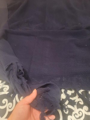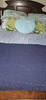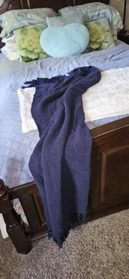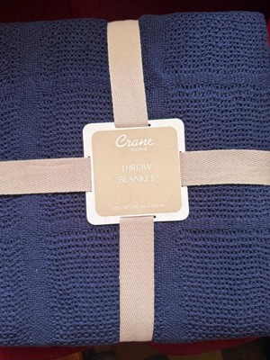 [This review was collected as part of a promotion.] I received this Crane Home knit throw blanket in exchange for my honest review. First off, it is nice and big. It's 100% cotton, so make sure to follow washing instructions. It's cozy, but not overly warm because it is a thinner, lighter throw. This will be nice for spring or summer. For colder nights, layering it with a warmer blanket would be better. I do like the rich navy blue color and the fringe details on the edges. I would definitely recommend it!