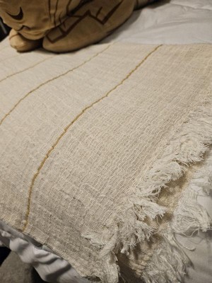 [This review was collected as part of a promotion.] The Crate Home Sahara Stripe Throw is lightweight but offers warmth, it looks beautiful styled over the back of my couch and easily can be washed in a standard washing machine!