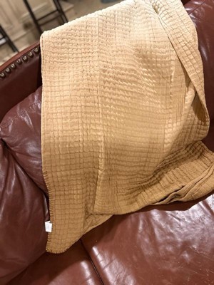 [This review was collected as part of a promotion.] This throw is such a beautiful addition to any living space. Crane really knocked it out of the park by paying attention to every little aesthetic detail to make this throw look and feel luxurious. While it’s not a super warm blanket for the winter months, it’s perfect to keep on hand for an extra layer, or for a light cover during the warmer months. I have not washed this blanket fully yet, but have been spot-cleaning as needed. It’s holding up very well.
