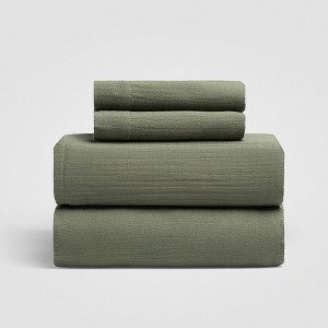Product Name: Zen Crinkled Comfort 4-Piece Sheet Set, Matcha Green – Queen