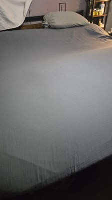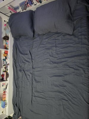 [This review was collected as part of a promotion.] Soft, breezy and beautifully textured — the Oasis Crinkled Comfort 4-Piece Sheet Set in Midnight Tide feels like slipping into a coastal cloud. It gets even more comfortable with every wash!