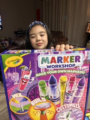 [This review was collected as part of a promotion.] Crayola Marker Workshop allowed my three children to build and customize their own markers. It came with all of the tools and inks, a fruit punch scent, normal and special marker tips, and labels for personalization.