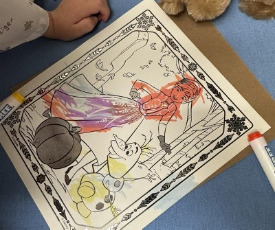 I will start by saying we love Color Wonder. We’ve always gotten basic kits or plain paper and it works wonderfully. The glitter ones? Absolute trash. This is the second glitter kit we’ve gotten and I thought the first one was a fluke…nope. The colors barely show up, if they show up at all. Even on sale, it was a waste of money. In the pictures, Kristoff is colored and Gale’s flames were colored with yellow and neither is noticeable. The brown and purple are noticeable, but barely.