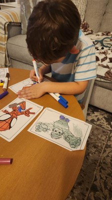[This review was collected as part of a promotion.] My son absolutely loved this set. As a big Spider-Man fan, he loved the variety of pictures. The mess free markers worked well and he scored discovering the hidden pictures. Just be sure to recap them as they dry out easily!