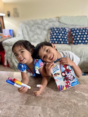 [This review was collected as part of a promotion.] Great set for Spidey lovers! "It's magic!" as noted by my 3 yo since he hasn't tried mess free markers before. This would be nice to travel with and use where you don't want regular markers accessible to kids in case of a mess. I wish the box it came in was a little sturdier so it could be thrown easily into a bag for travel. But having both pages and markers in one set was nice.