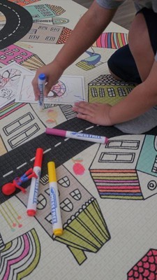 [This review was collected as part of a promotion.] Definitely a great product for toddlers who still quite don't understand coloring on paper ONLY. Somehow markings end up on walls and furniture. With this parents don't have to worry or constantly be watching toddlers as they are being creative!