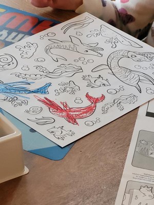 [This review was collected as part of a promotion.] This was perfect for my3 Dino enthusiasts (7,4,2). There are 5 activities and three of each so it was easy to divide amongst them. The stickers were a big hit and easy to peel off once colored. The 3D Dinos were also a big hit and easy enough for my 7 year old to assemble alone. The crayon and marker organizer was also nice as a display of options and keeping them organized. I love the little markers for little hands. When coloring the fuzzy pictures, the markers can bleed a little but it’s all washable so not a big deal