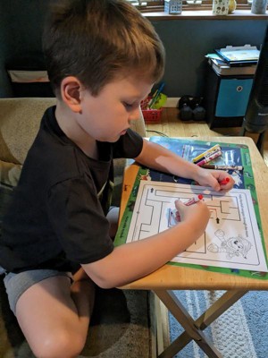 [This review was collected as part of a promotion.] A perfect on-the-go thing to keep little ones busy. I loved that the choices of coloring sheets are on the outside, and appreciate that the markers come in a bag to help keep the kit together. It was also a good balance of coloring and activity sheets.