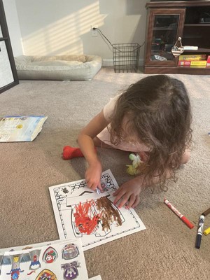 [This review was collected as part of a promotion.] This is a great set! I love that the pages are not attached like a coloring book so they don’t have to be ripped out and saves the child frustration. It is a perfect set to take on the go since it has markers included. The stickers complete the set!