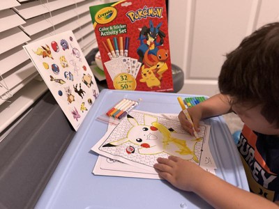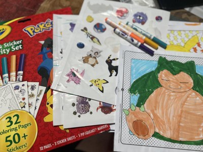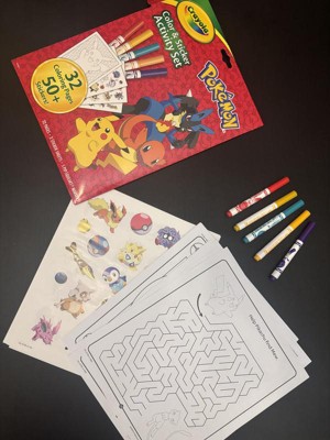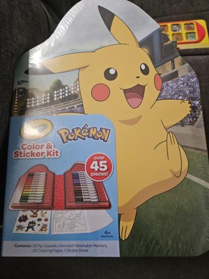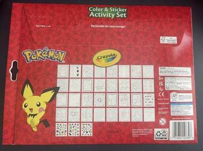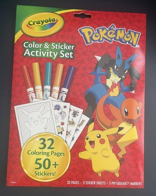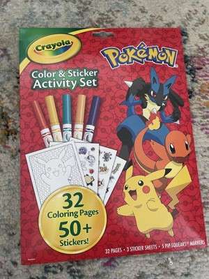 - POKEMON ACTIVITY SET: This Crayola coloring set features 32 Pokemon Coloring Pages, 5 Crayola Pipsqueak Markers, and 50+ Stickers of Ash, Pikachu, Sobble, and friends.