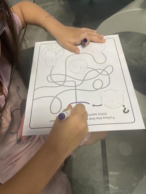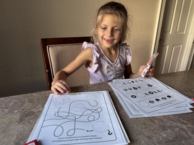 [This review was collected as part of a promotion.] This is a nice take-along activity pack with plenty of pages and a great selection of markers. It's easily portable to take to a restaurant or to a friend's house. My 7 y/o liked that it had a coloring page on one side and an activity on the back. The only recommendation that we have is to make the paper density a little thicker, as the marker rubbed holes in the paper when coloring.