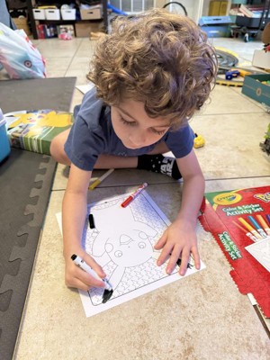 [This review was collected as part of a promotion.] This is a great activity set. We love the size of the pages and graphics. We specifically love how every page has an activity side and a coloring side, my son loves activity books so having that in this kit was a hit for him. Also, stickers are always a great addition to any activity kit for little ones. If we were to say anything not so great about the kit, it would probably be; that it could include more markers.