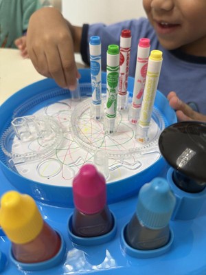 - SPIRAL & SPIN ART: The 3-in-1 Super Gear in this art set makes it possible to use all 6 markers at once! Create stencil images and spiral shapes or spin out with drippy ink designs. You can even mix a bit of both!