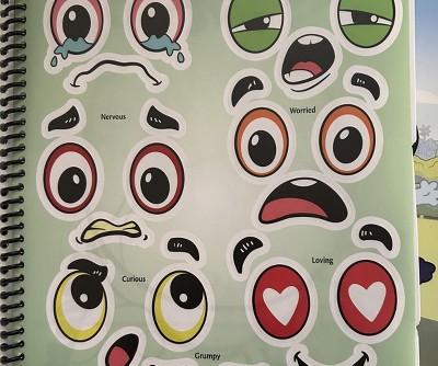 The book itself is great. The spiral binding helps the pages easily turn for small hands. The paper is thicker than expected, keeping some markers or paint pants from bleeding through. It's perfect for the intended age. The stickers provided are a nice bonus if trying to incorporate "I feel" conversations into the art. Was purchased as a creativity challenge for a tween to turn the little kid characters into something unexpected. The flip book aspect has really kept him going on this art project, mixing and matching his wacky designs.