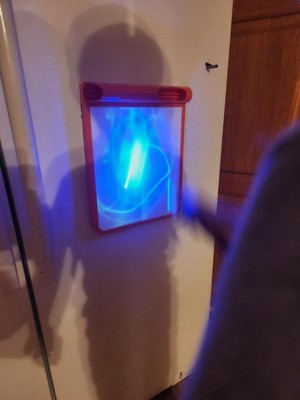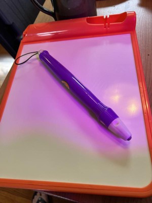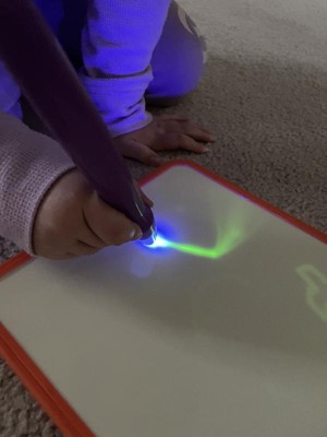[This review was collected as part of a promotion.] This is super cool! The pen is cool and the thickness is perfect for small hands. We wish there was an “erase” function. That’s about the only thing bad you can even say about this! Holding the pen slightly away from the board makes a cool effect!