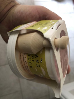 [This review was collected as part of a promotion.] My daughter is IN LOVE with this playdough! The color is bright and the glitter is fun. The tiny scoop is great for little hands and I love the cardboard packaging. There are directions for how to take care of it and if it dries out, how to make it usable again. This is a hit in our house!