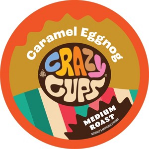 Crazy Cups Caramel Eggnog Flavored Coffee PodsSleigh the Day with Caramel Eggnog DelightOur Caramel Eggnog coffee brings together the comforting taste of eggnog with the luxurious sweetness of caramel and vanilla. Add in a whisper of rum flavor, and you've got coffee that's pure holiday magic, whether you're brewing it hot or serving it over ice.100% Arabica Beans, Medium Roast, Flavored with a Blend of Natural and Artificial Flavors.Treat yourself to the creamy, dreamy taste of Caramel Eggnog coffee, make any moment a holiday moment.