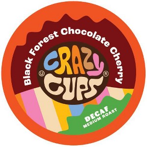 Crazy Cups Decaf Black Forest Chocolate Cherry Flavored Coffee PodsChase the Cherry: Black Forest Cake Gone Coffee Crazy!Dive into a dessert-inspired coffee experience! Our Decaf Black Forest Cake K-Cup is a luscious blend of rich chocolate, sweet cherries, and smooth coffee that tastes just like a slice of your favorite cake. Enjoy it morning, noon, or night, no forks required!100% Arabica Beans, Medium Roast, Flavored with a Blend of Natural and Artificial Flavors.Indulge in cake-flavored coffee that’s rich, sweet, and oh-so-satisfying, get your pods now!