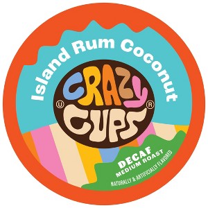 Crazy Cups Decaf Island Rum Coconut Flavored Coffee PodsDecaf Island Vibes: Rum, Coconut, and CoffeeSail away to a tropical paradise with Crazy Cups Decaf Island Rum Coconut coffee. This indulgent blend of bold rum and creamy coconut creates a vacation in every cup. With 30% more coffee in every pod, plus zero calories and sugar-free indulgence, it’s the perfect escape without leaving home.100% Arabica Beans, Medium Roast, Flavored with a Blend of Natural and Artificial Flavors.Take a coffee vacation with Crazy Cups Decaf Island Rum Coconut. Get yours now and savor the tropical flavors!
