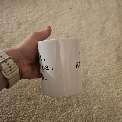 [This review was collected as part of a promotion.] Cute mug that would work great for the Grandpa's in your life. I plan on giving this to one of them from the grandkids for Christmas. It's an 11 ounce mug which isn't huge but it still holds a cup of coffee or whatever else he might drink. I like that it's fairly simple, good quality and a good price.