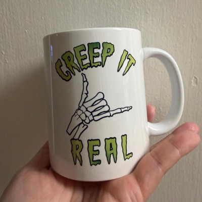 [This review was collected as part of a promotion.] I saw this mug and thought it was a cute Halloween themed mug that could be used year round. It features a green gradient color in the wording. There are two images on the mug. Both are the same image on each side of the mug. So no matter which way you hold the handle, the image is the same. The cup holds about 1.5 cups of liquid that is filled to the brim of the cup.