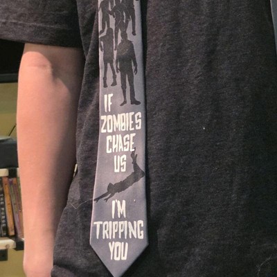 Crazy Dog If Zombies Chase Us I'm Tripping You Necktie Funny Neckties for Men Halloween Tie Mens Novelty Neckties