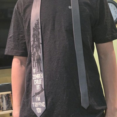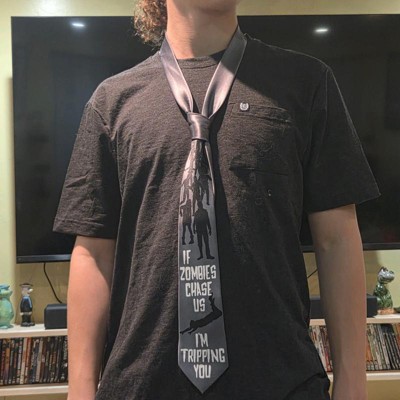 - Ideal Fit: Designed for comfort and style; this polyester necktie fits any tie knot like Windsor or Pratt; features a tapered wide end to display the funny zombie design fully; one size fits all