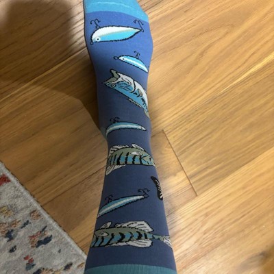 [This review was collected as part of a promotion.] I got these for my husband. Not only is he a fisherman, but he truly is an introvert, so saying he only likes 3 people isn’t far off. The colors are fun and vibrant. The socks are cute and easy to read. They are a bit thin though. He wears size 15 shoes, so find socks that fit perfectly is always a stretch