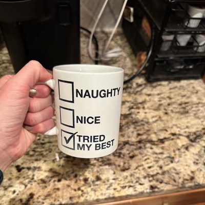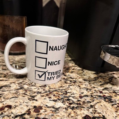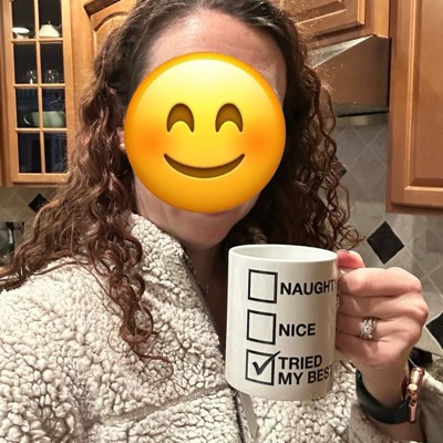 [This review was collected as part of a promotion.] I am a daily coffee drinker, and I love collecting different coffee mugs. I decided to add this one to my collection for the holidays. It’s a bit smaller than most of my mugs, but I think this one’s actually just a normal size and all the ones I already have are big. I like the simple design of it. The handle is a little bit small to hold, but not terrible. I think this would also be a great gag gift or something for white elephant party.