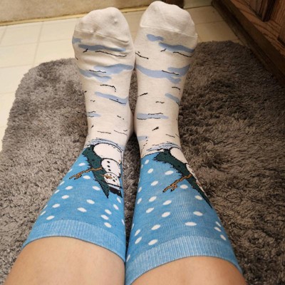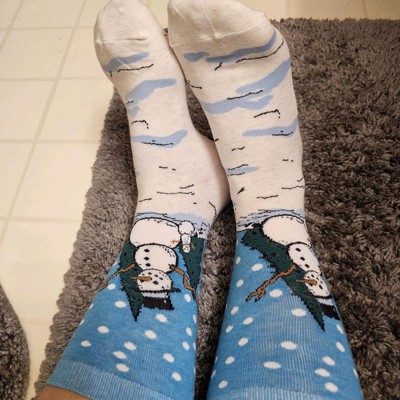 [This review was collected as part of a promotion.] These socks from Crazy Dog Socks are great for winter. They are kind of thin but they still keep your feet warm. I like how festive they are with snowmen and other winter things on them. I wear a shoe size 8-8.5 and they fit me, they go up to your calves and they can get a little tighter the further they go up.