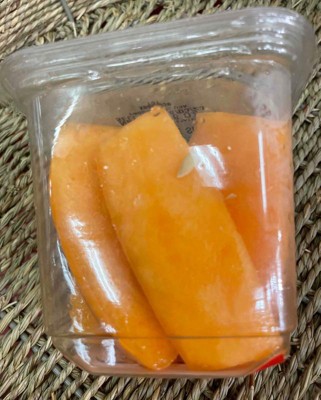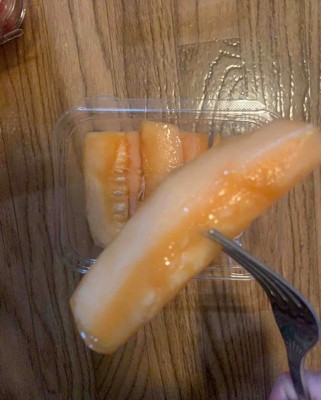 [This review was collected as part of a promotion.] This container contained fresh cantaloupe cut into spears. It is nice to have the fruit already cut and peeled. The container has a generous amount of the cantaloupe, I would say pretty close to a full size melon. I found the fruit to be ripe and tasted good. I received an incentive to write this review.