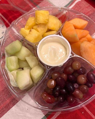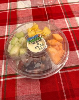 Crazy Fresh Round Fruit Tray 2.5lb. Fruit trays are a party staple, but we don't always have time to prepare. With a Crazy Fresh Round Fruit Tray, we've done the cutting for you - fresh and precise! And what's better? We've added a creamy fruit dip for extra convenience and dipping fun. It's also the perfect grab and go snack for the fruit lover in your group.