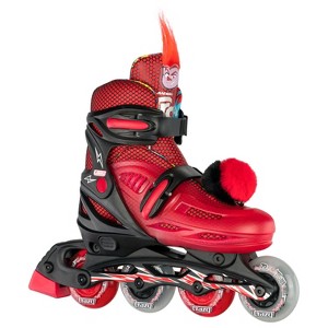 The Trolls size-adjustable inline skates from Crazy Skates are an officially licensed TROLLS product with characters from the new TROLLS movie! Choose a skate featuring your favorite Troll either Poppy or Barb each with their own unique color scheme Trolls logo removable Pom-Pom and colorful Troll head on the tongue with their signature Crazy Troll hair! Your kids will love bringing the fun of the Trolls movie along on their next skating adventure!