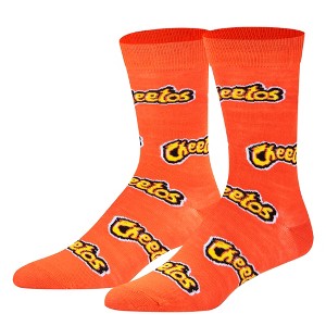 Snack-Inspired Style That Pops - Show your love for iconic snacks with these bold and bright Cheetos all-over print novelty socks. Covered from toe to cuff in the unmistakable Cheetos logo, these socks turn snack cravings into wearable fun for men and women.