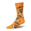 Chester Cheetos Orange Men's Crew Socks. Get cheesy with these Chester Cheetos Orange Men's Crew Socks! Featuring the calm and confident Chester Cheetah, these vibrant orange socks are perfect for snack enthusiasts who love to make a statement. These standout crew socks will bring a touch of fun and flavor to your wardrobe.