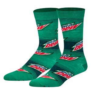 Your favorite soda just got even sweeter with these bold green striped Mountain Dew logo socks; Officially licensed and authentic novelty sock merchandise; Be you, Be ODD