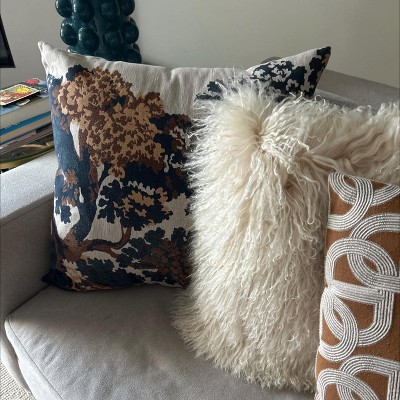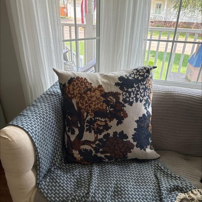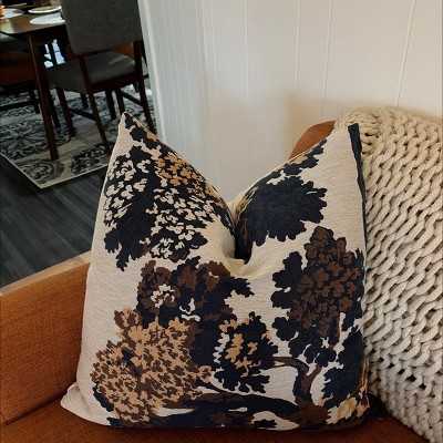 Cream-Navy-Olive Jacquard Tree Pillow 24x24 - Threshold designed with Studio McGee