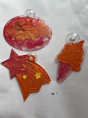 I bought these for my kids because they love to paint. They were excited to paint these and hang them up in the window. Sadly the paints were all solid and squishy. Very disappointing. I gave it 2 stars just because there were no issues with the sun catchers themselves and they're all pretty cute. Also, I don't know if it mentions it on the package but the instructions say that the paint is permanent and stains once dry. Just an FYI