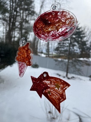 My kids had fun doing this paint activity but I feel like the paint included should've been more of a sheer glue-paint like the one that was included in the Christmas ornament craft. This paint is solid, so it doesn't give that see through effect like with most sun catchers. Just not very sightly.