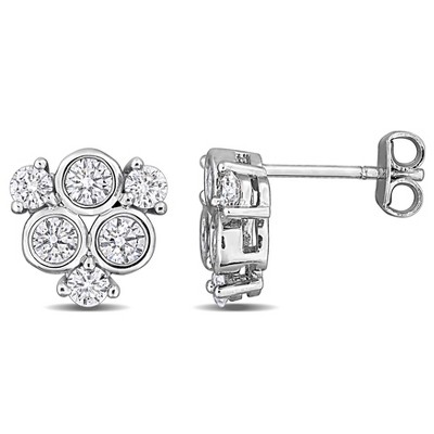 CREATED FOREVER | Sterling Silver 1 CT TW Lab-Grown Diamond Cluster Stud Earrings