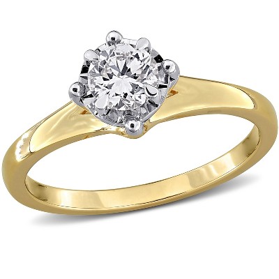 CREATED FOREVER | Yellow-Plated Sterling Silver 1/2 CT TW Oval and Round-Cut Lab-Grown Diamond Engagement Ring
