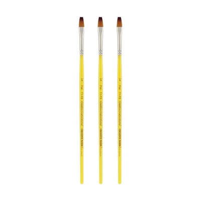 The Dura-Handle artist paint brush utilizes synthetic taklon hair, which is soft yet resilient, offering superb control and precision. The brush's taklon hair is crafted in three different diameters to ensure versatility and adaptability across various painting techniques. Whether you are creating detailed lines or broad strokes, this brush shapes to a square edge effortlessly, making it ideal for all traditional media including oils, acrylics, and watercolors.