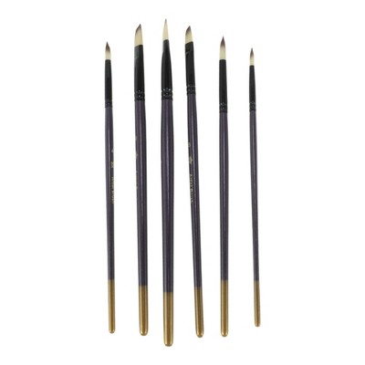 The brushes feature nickel-plated seamless brass ferrules, which ensure durability and prevent any hair shedding. The responsive, full-bellied round brushes end in a perfect point, allowing for intricate detailing and dynamic line work.