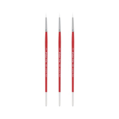 The brushes feature nickel-plated seamless brass ferrules, which ensure durability and prevent any hair shedding. The responsive, full-bellied round brushes end in a perfect point, allowing for intricate detailing and dynamic line work.