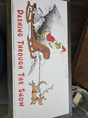 Add a Grinchy touch to your home this holiday season with this festive, officially licensed Dr. Seuss' The Grinch framed wood plaque. Designed and printed in the United States on quality materials, this is an item you’re sure to love. Our Dr. Seuss framed wood plaque wall art accentuates the look of your interior décor, looking equally stunning in a collage or on its own as a focal point on the wall or sitting on an end table.12x24x1.5Printed on white-coated poplarFade-resistant UV inks for long-lasting artworkComes ready to assemble with an included sawtooth hangerFinished with a rustic dark walnut stained frameLicensed Dr. Seuss Product: This officially licensed product features authentic Dr. Seuss designs.Please note: Given the natural wood stain, color may vary.Designed and printed in the USA